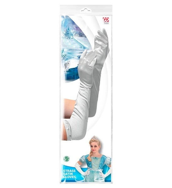 GANTS LONG SATIN BLANC AVEC STRASS ENFANT. REF.34471