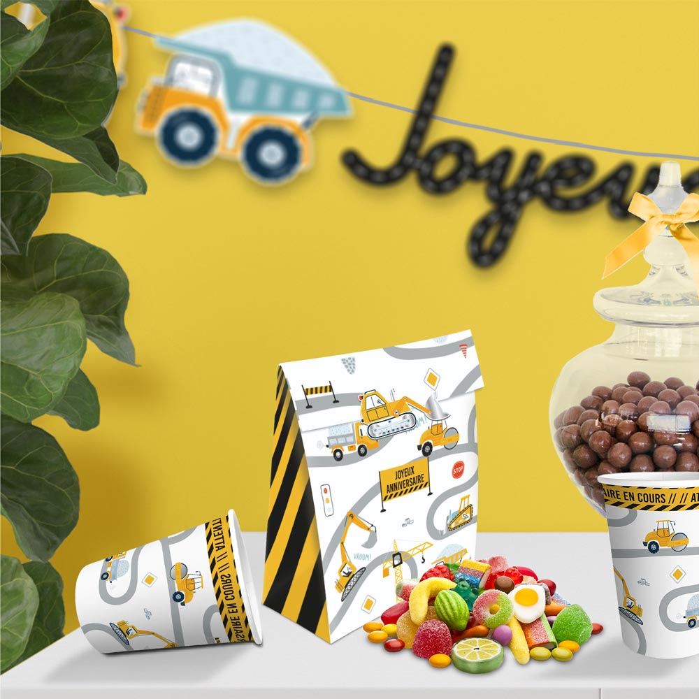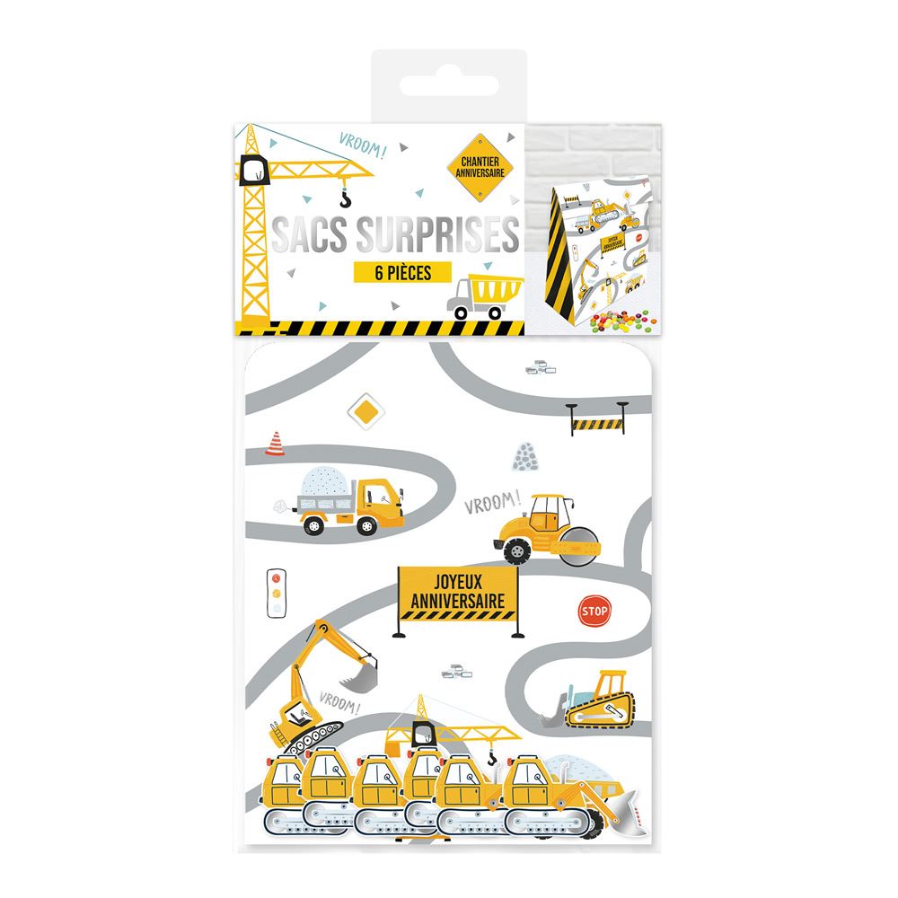 SACHET 6 SACS SURPRISES ANNIVERSAIRE CHANTIER. Pour emballer un cadeau de façon originale, nous vous proposons notre sachet de 6 sacs surprises.