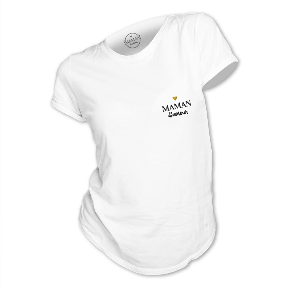 T SHIRT BRODE « MAMAN D’AMOUR » TAILLE M. Pour un joli cadeau affectif à votre maman, craquez pour ce t-shirt M Maman d’amour brodé.